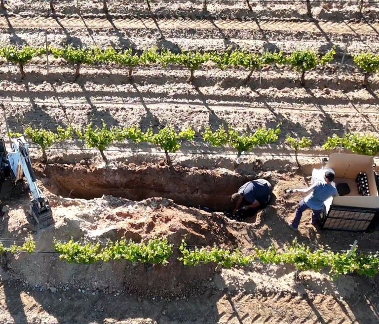 Enterramos cada botella a dos metros de profundidad, donde no hay luz, ni ruido, ni cambios de temperatura.